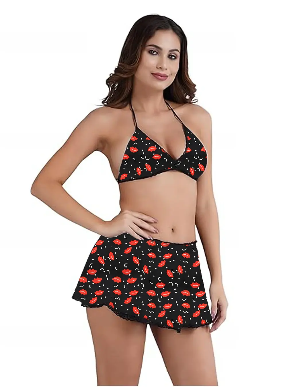 Chia Fashions Women`s Halter Neck Heart Printed Babydoll Nightwear.