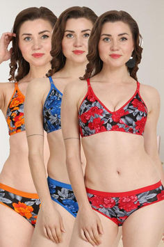 This is a pack of three lingerie sets, each featuring a beautiful flower print. They are made from a smooth, comfortable, and breathable imported fabric.